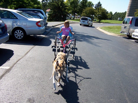 Below is a picture of Cosmo (after Harley was retired) pulling a child