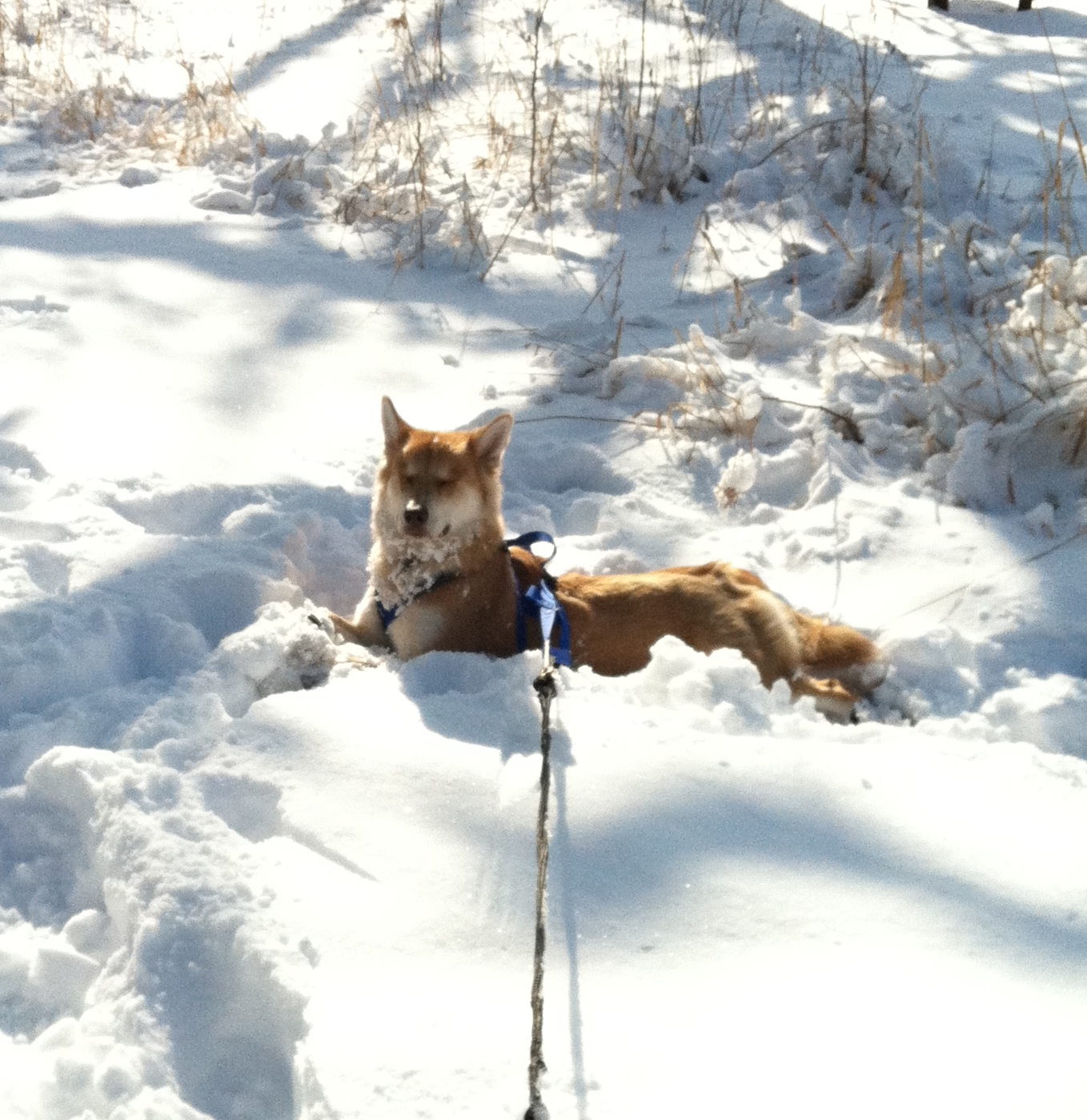 Here is our dog Vita,relaxing in the snow.