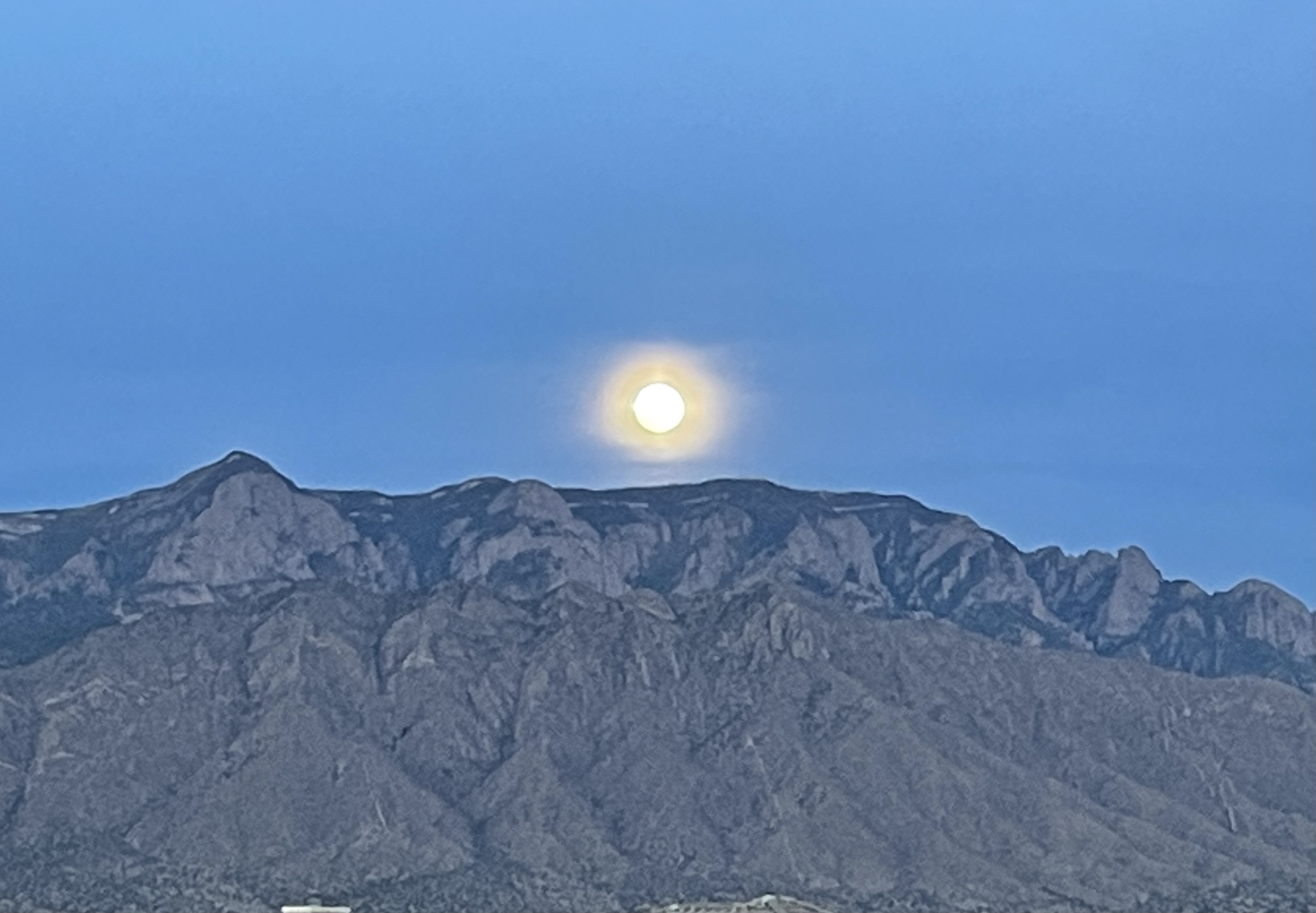 This is a shot of the moon over Sandia Peak.