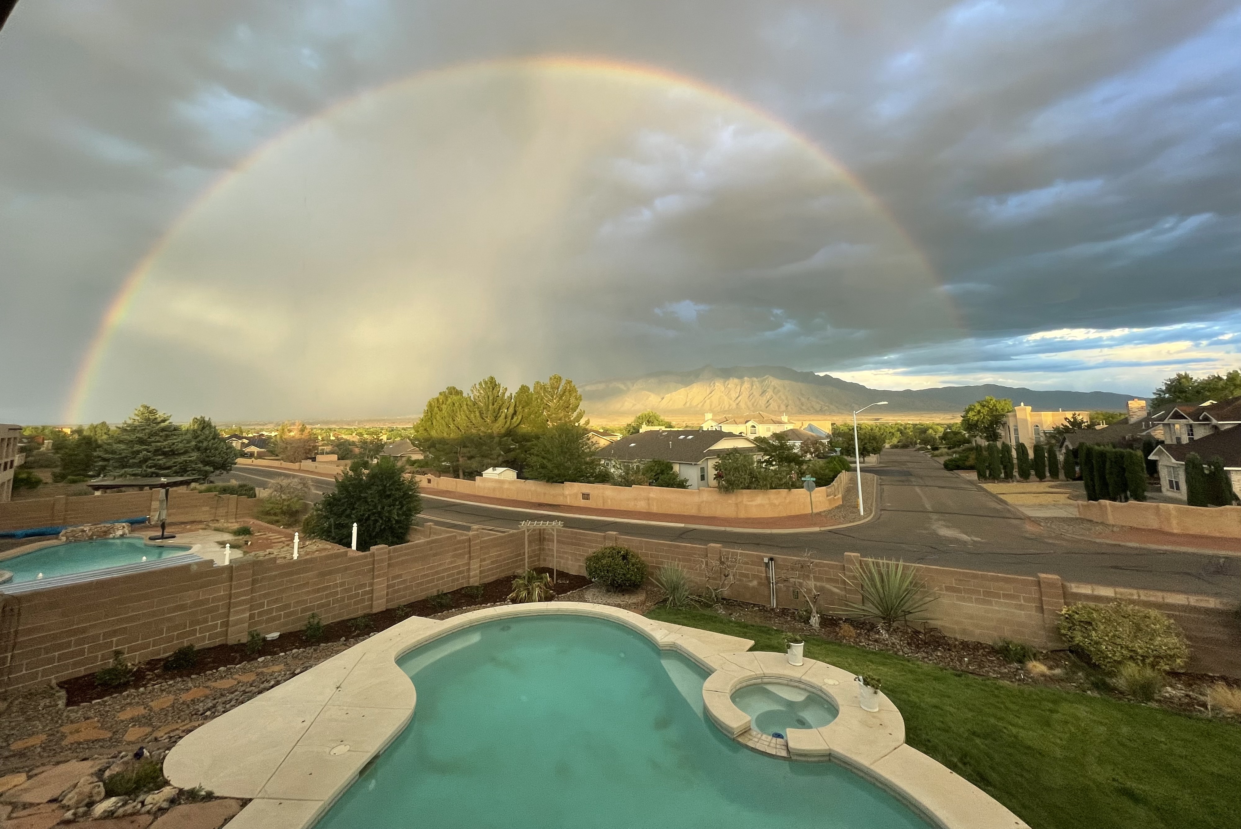 It doesn't rain a lot in New Mexico, but it does rain some. When it does rain sometimes there is a stunning lightening display, and sometimes - as seen here - stunning rainbows.
